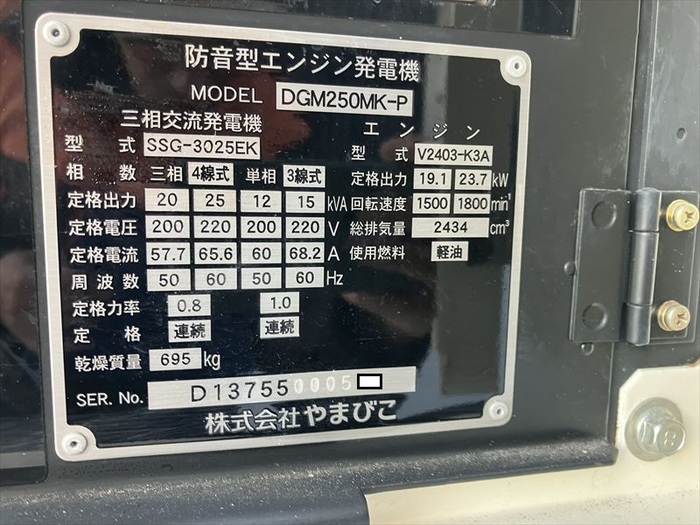 三相交流発電機 / 定格出力:25KVA