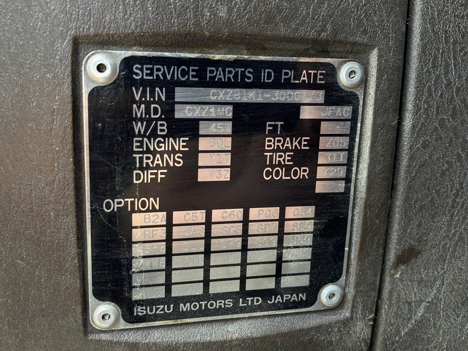 | Chassis Number | CXZ81K1 |