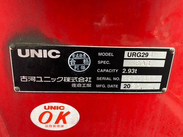 Remote Controller Attached / Body maker:UNIC / Crane:2.93t 4 STEPS