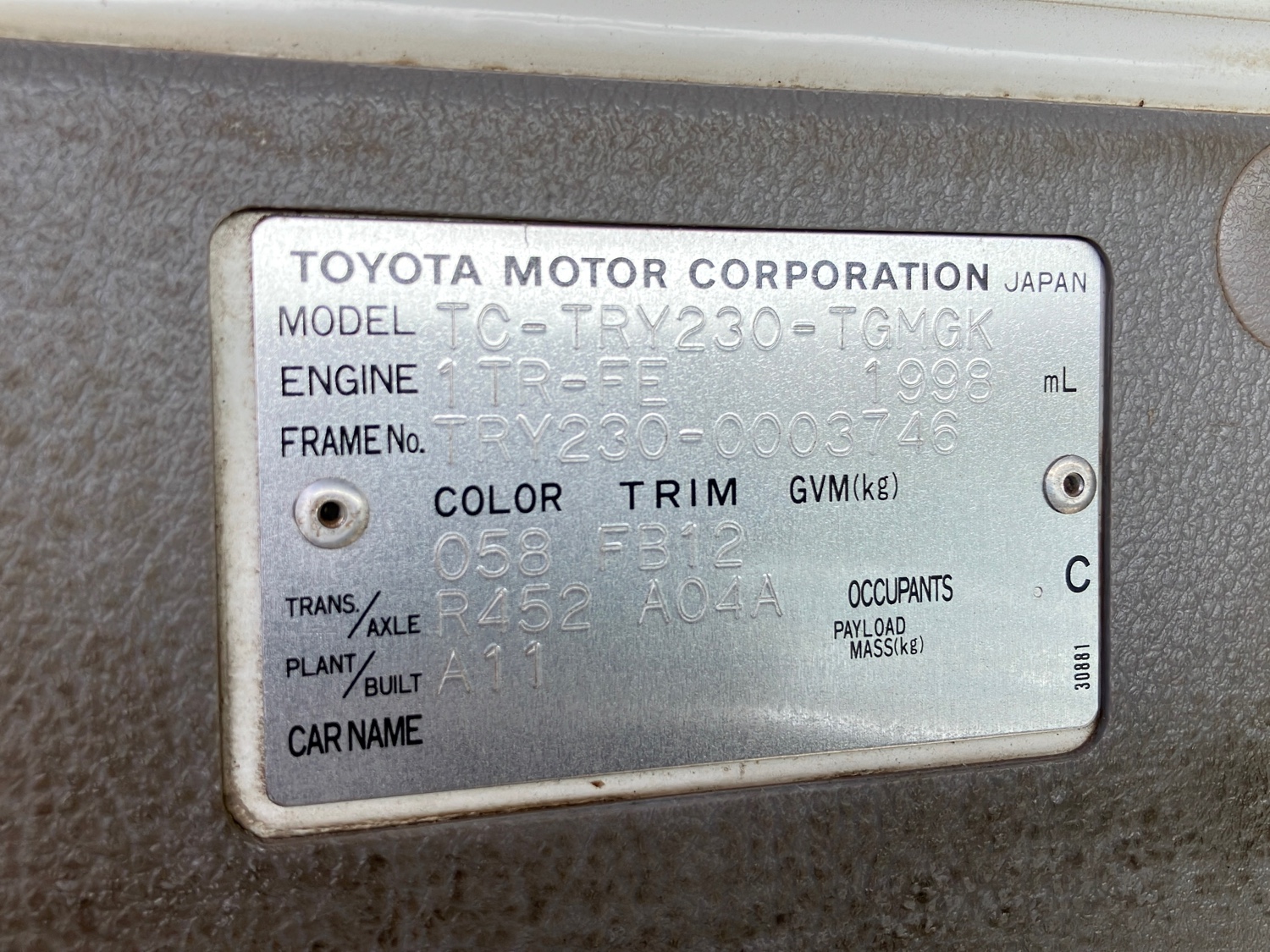 | Chassis Number | TRY230 |