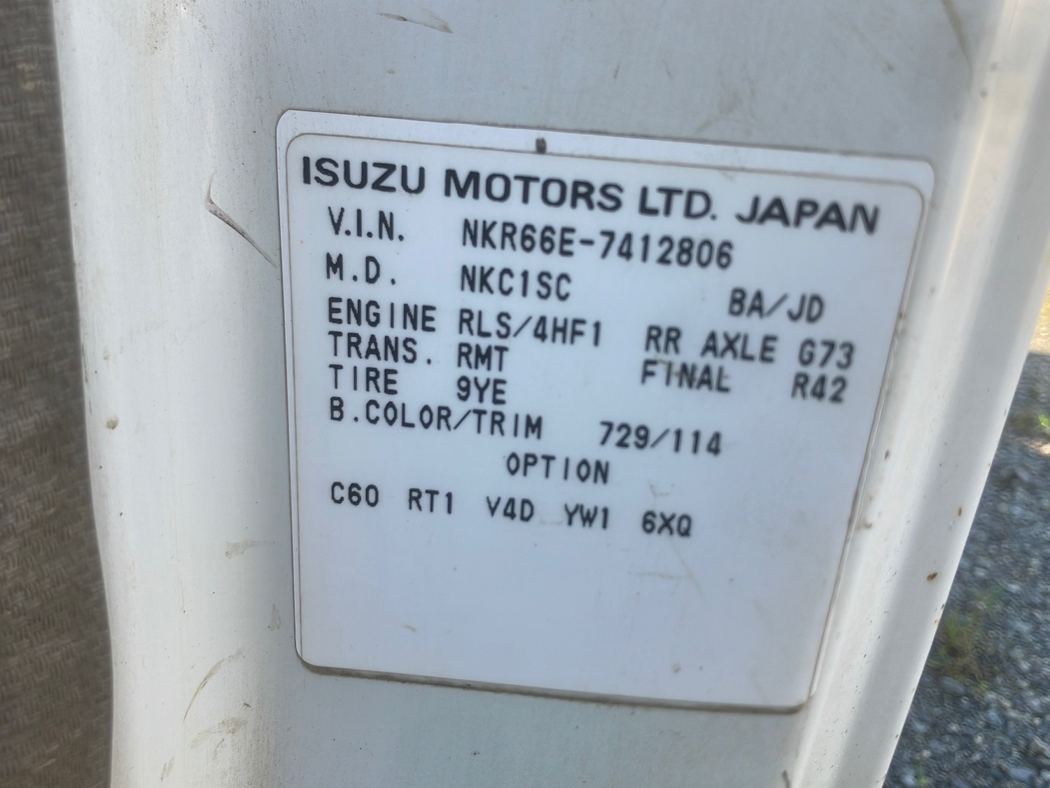 | Chassis Number | NKR66E |