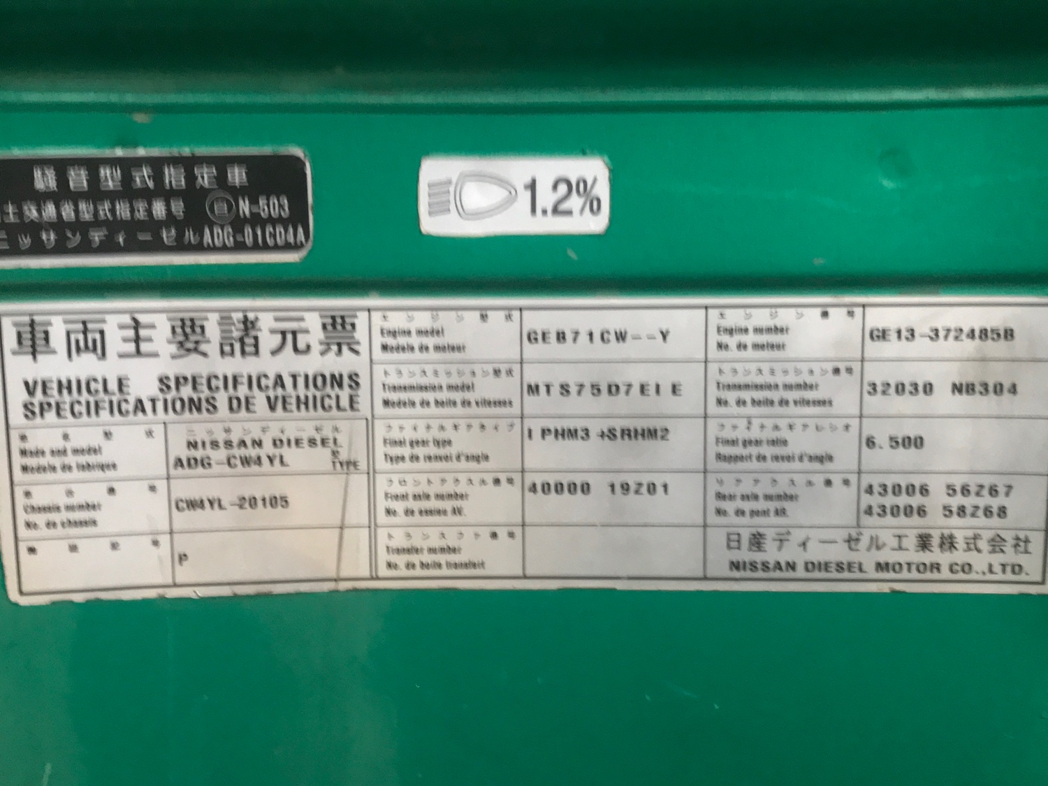 | Chassis Number | CW4YL |